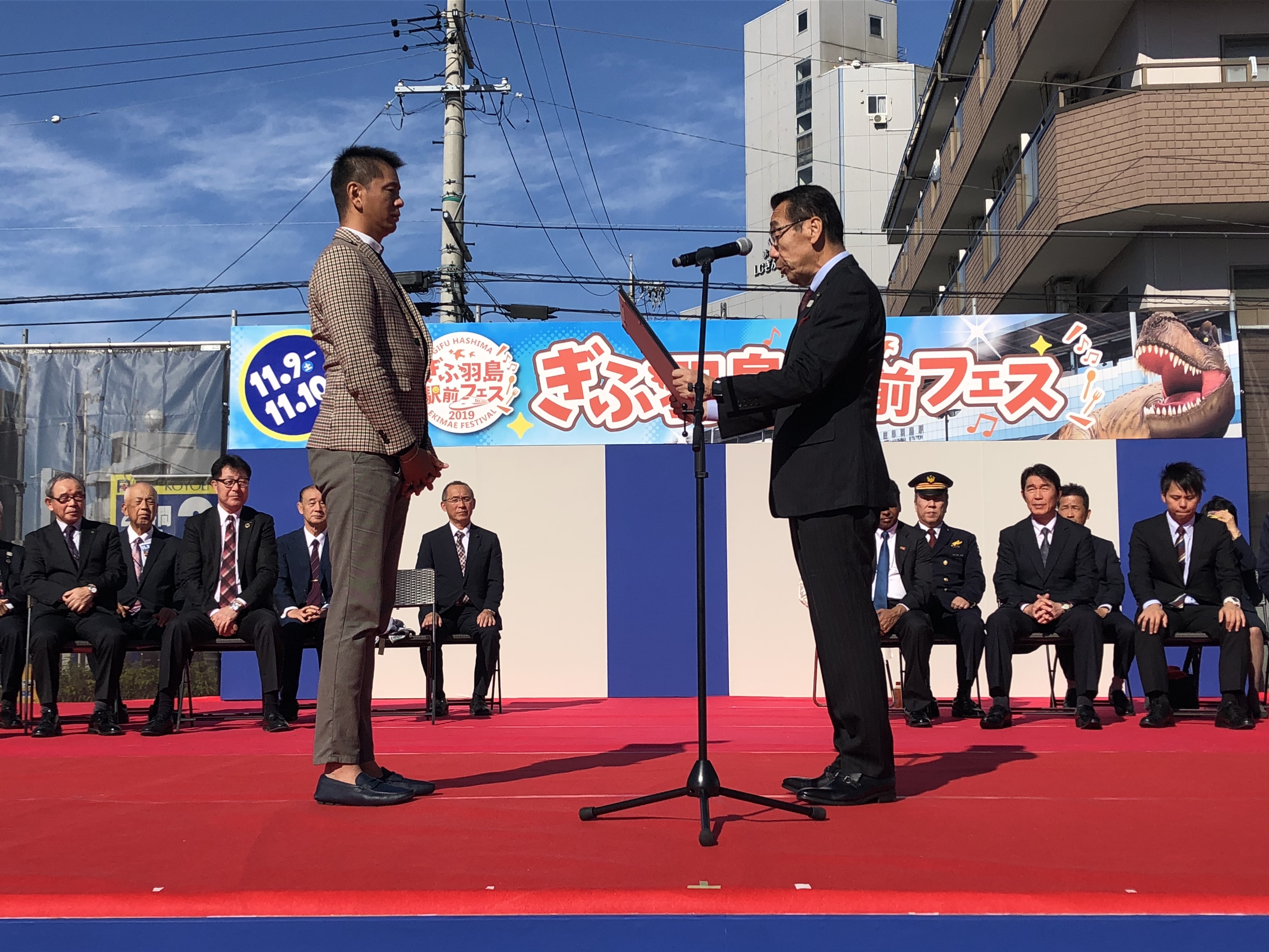 市長から羽島市の観光行政並びに駅前フェスへの多額の寄付に対して感 謝状が授与されました。