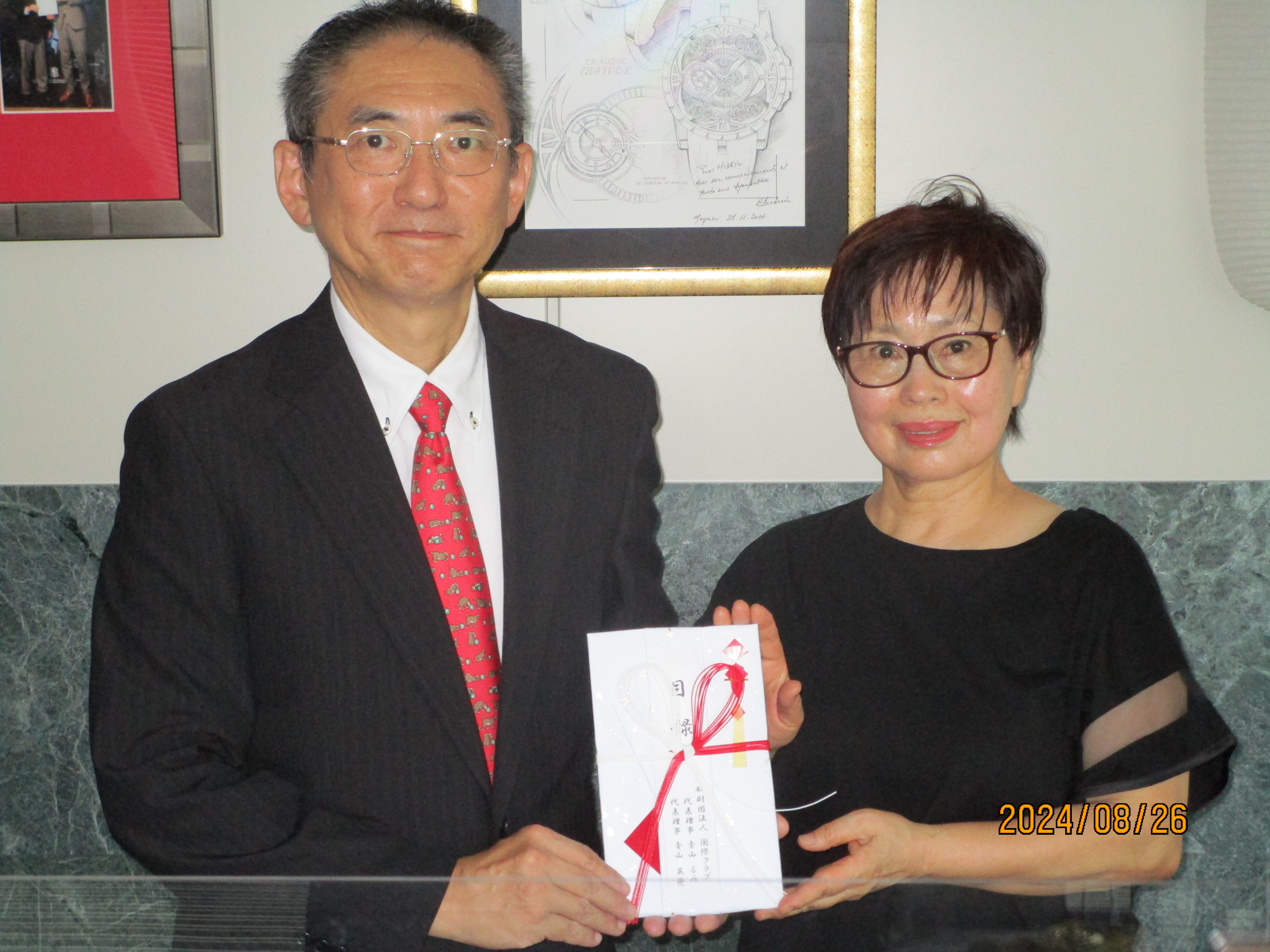 して「国際クラブ研究教育助成事業」設立の申請を行い、500万円を寄付しました。