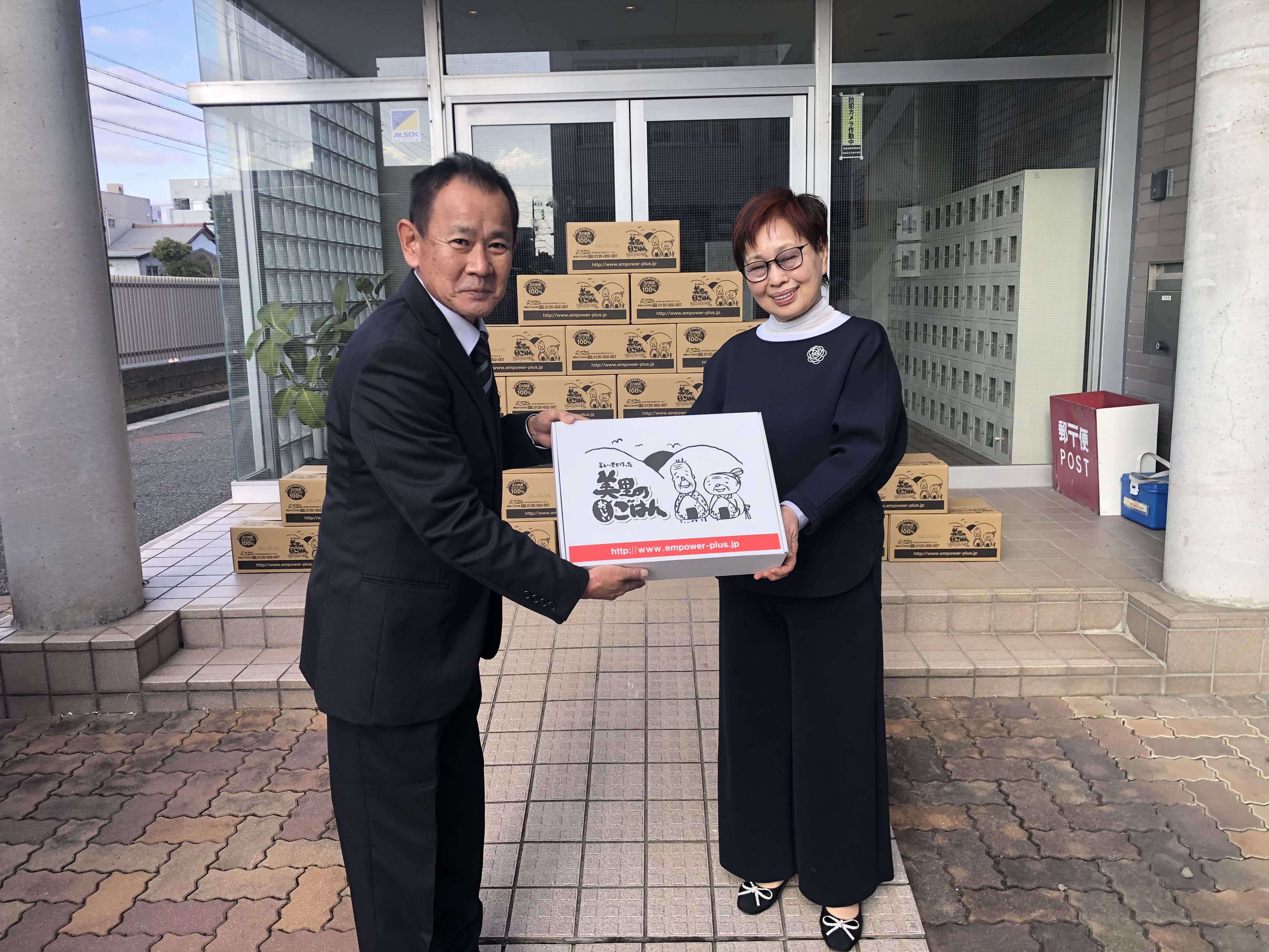 一般財団法人国際クラブは、岐阜県羽島市内中学校等5校の生徒及び教職員に美里のごはん(レトルトパックごはん)を寄付しました。
